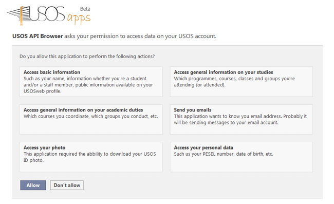 - Authorize URL: https://usosapi.pcz.pl/services/oauth/authorize